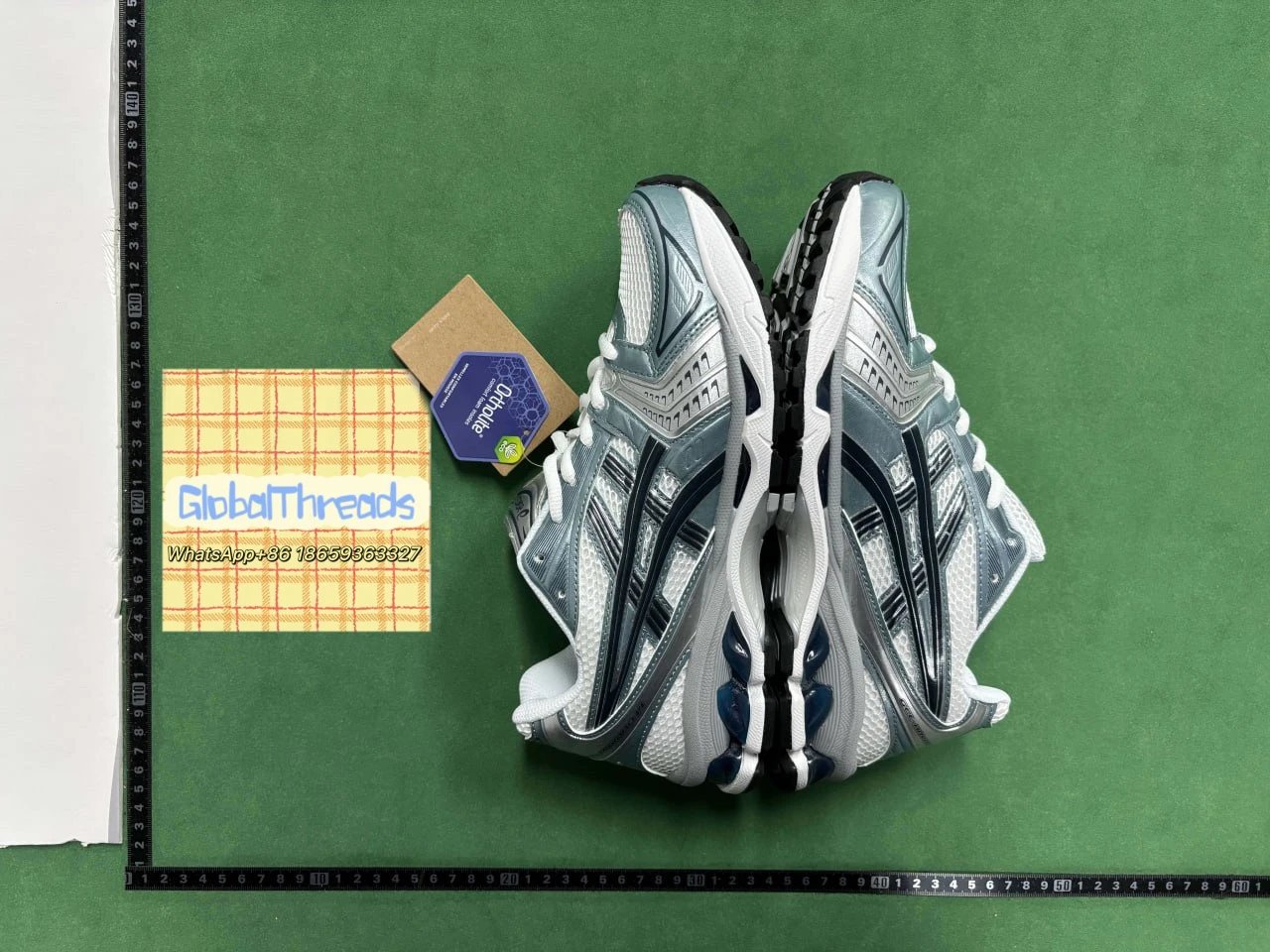 Example: Take photos of the logo, check stitching quality, measure the insole length, etc.