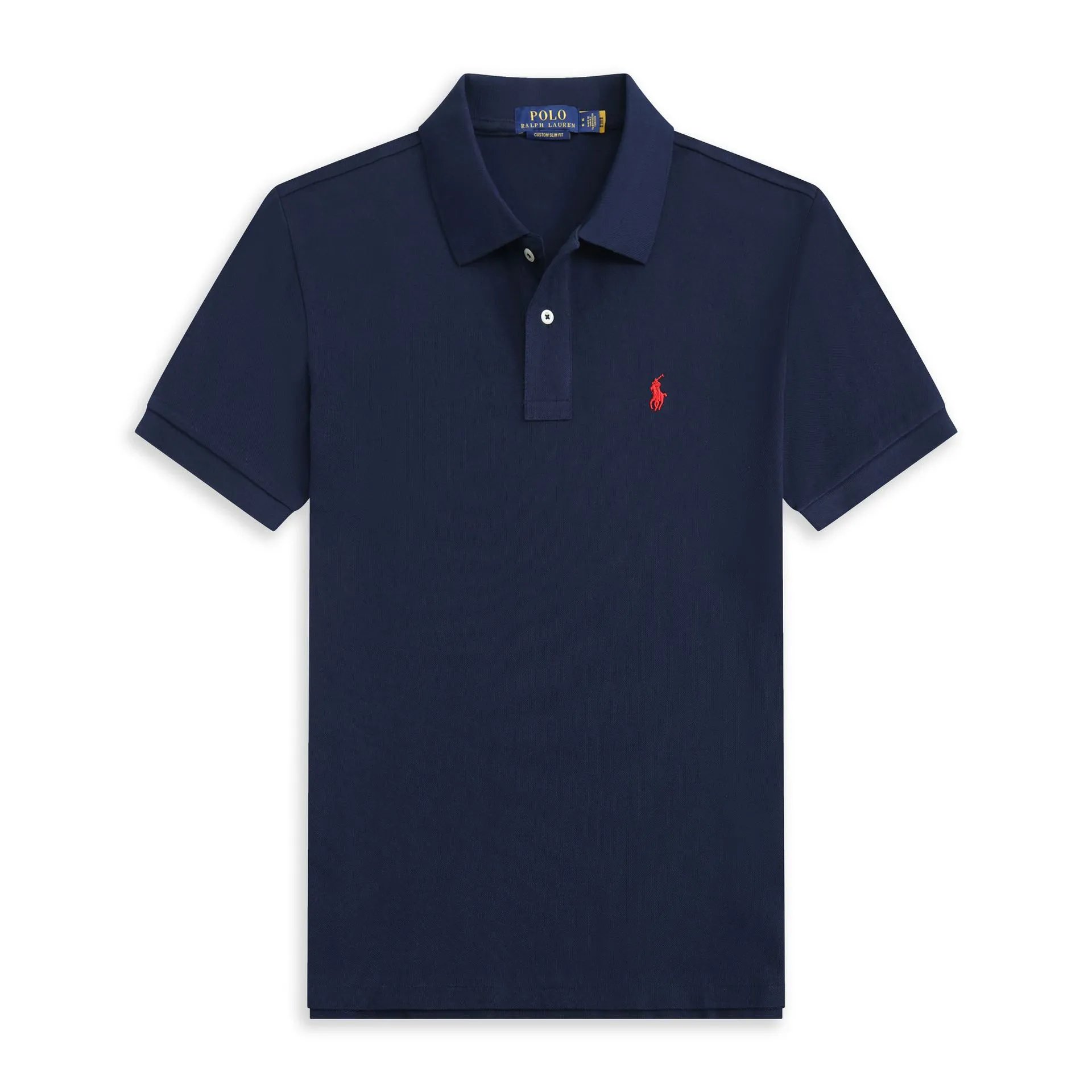 19夏季男式翻领大码宽松纯色纯棉刺绣短袖T恤
