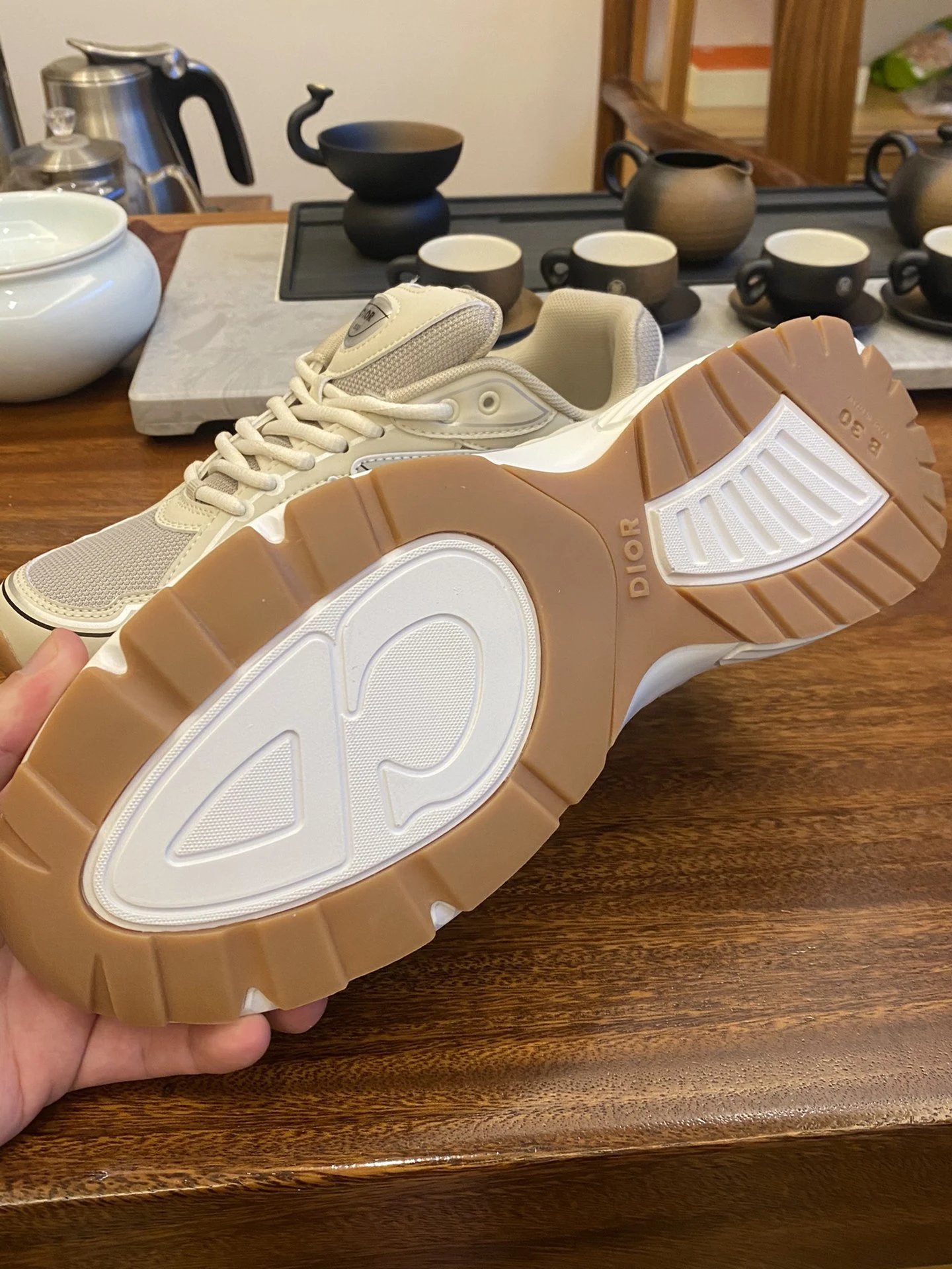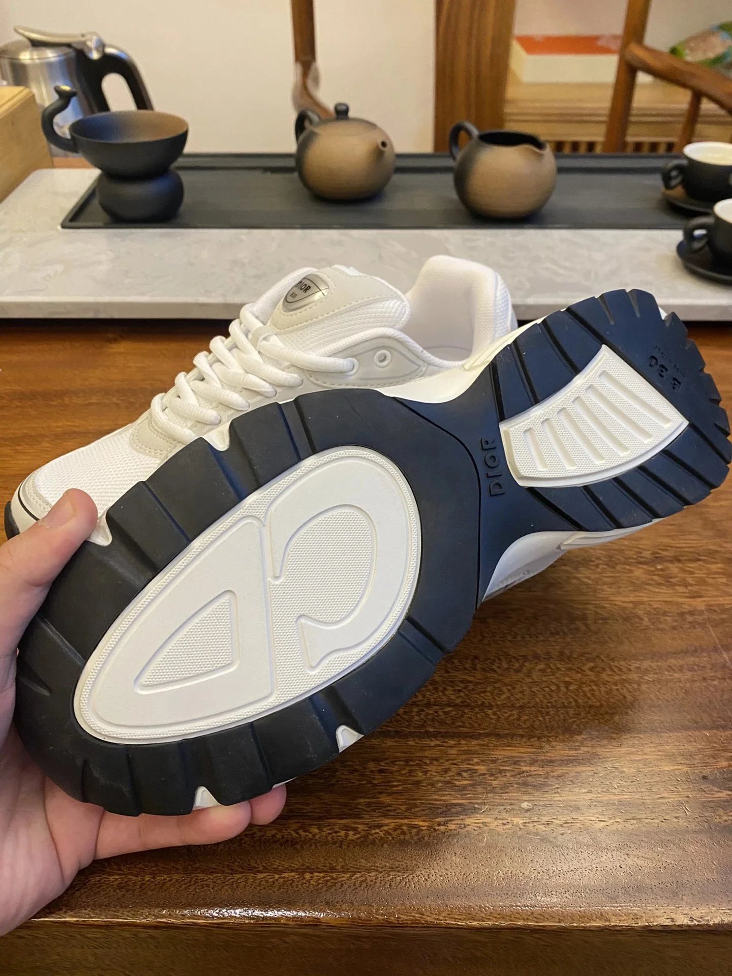Example: Take photos of the logo, check stitching quality, measure the insole length, etc.