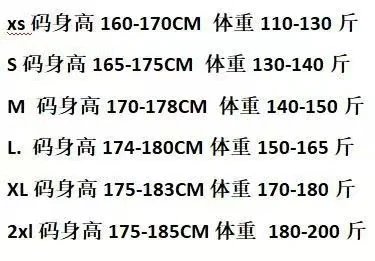 尺码:XS