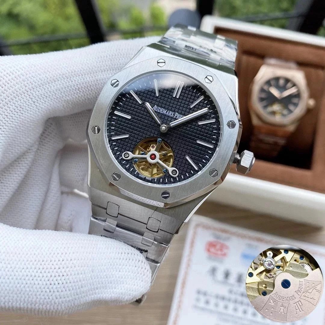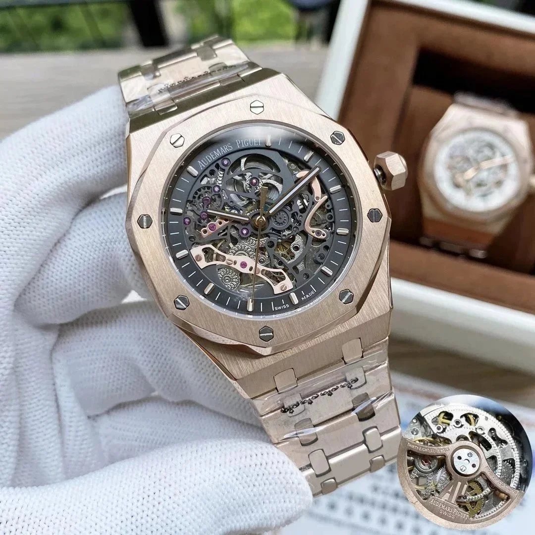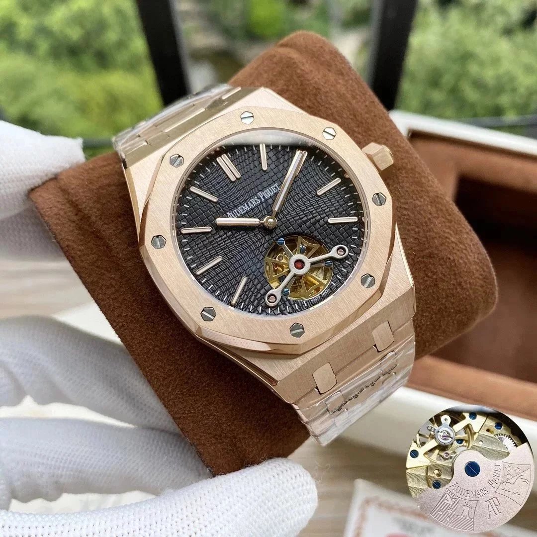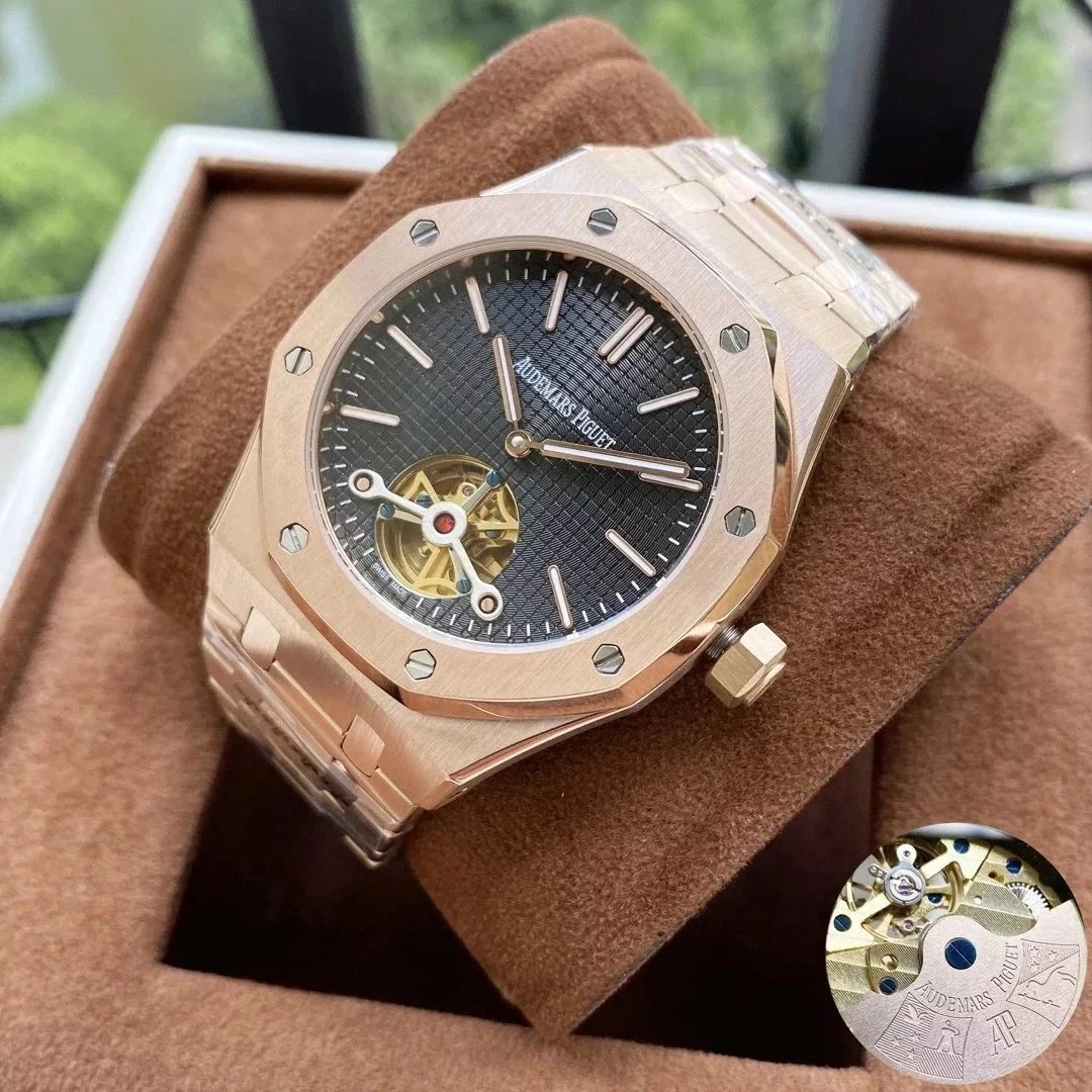 【款式一】玫瑰金壳·黑盘钢带