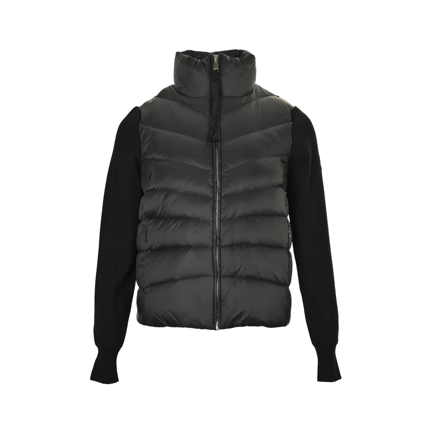 袖子针织拼接不规则轻薄羽绒服-黑色