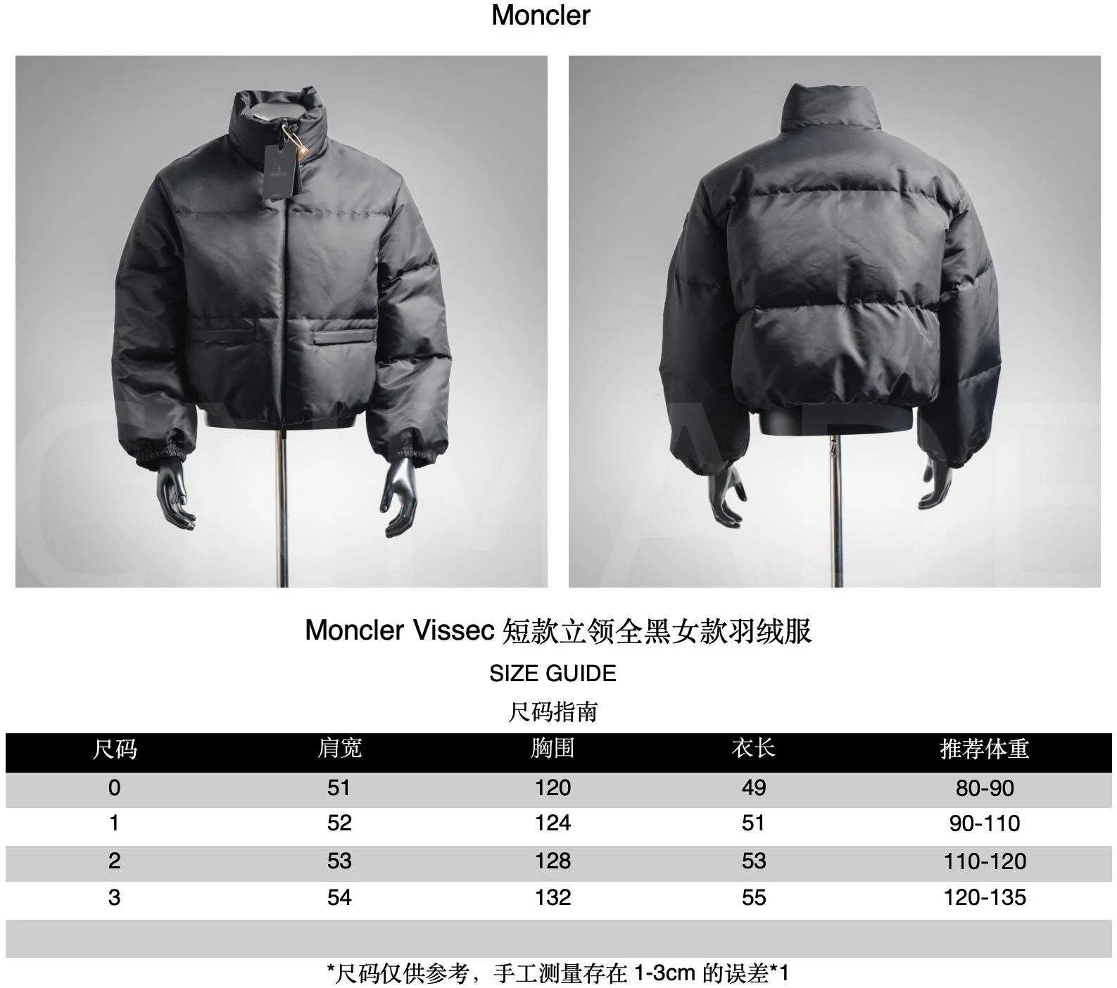 MC M0ncler纯黑色立领短款羽绒服