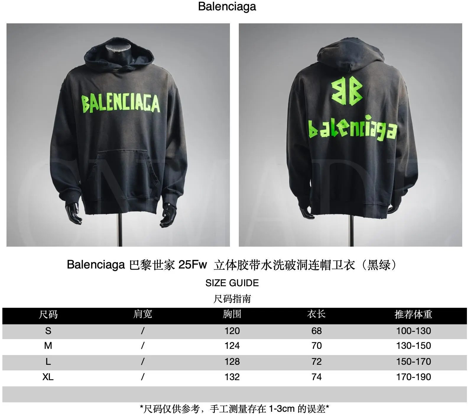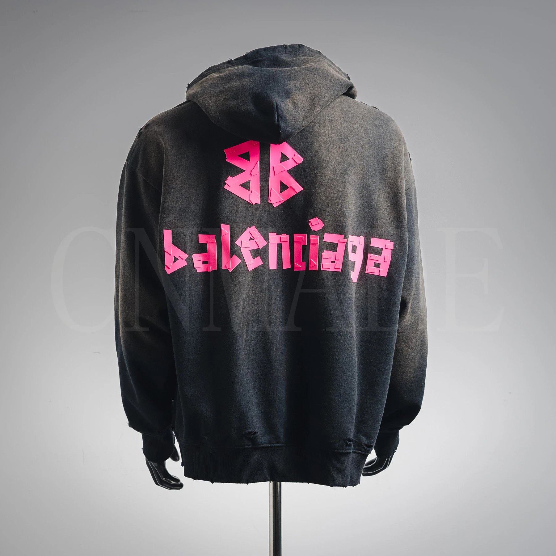 BLSJ 25Fw 立体胶带压胶水洗破洞连帽卫衣