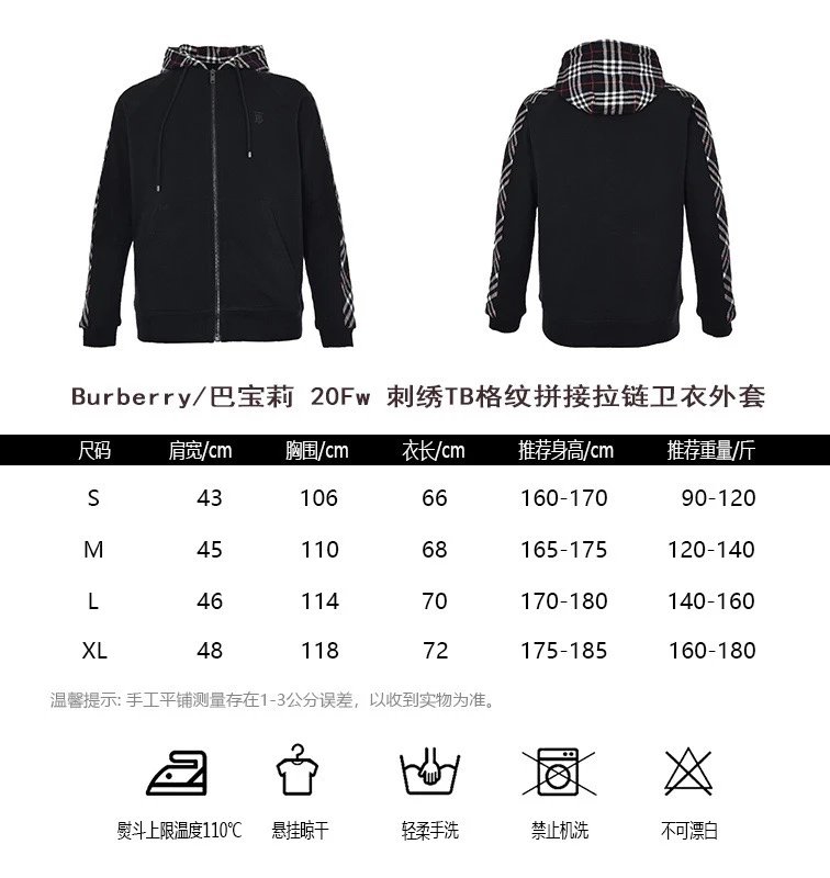 0:9710138388: 颜色:黑色-20Fw 刺绣TB格纹拼接拉链卫衣外套