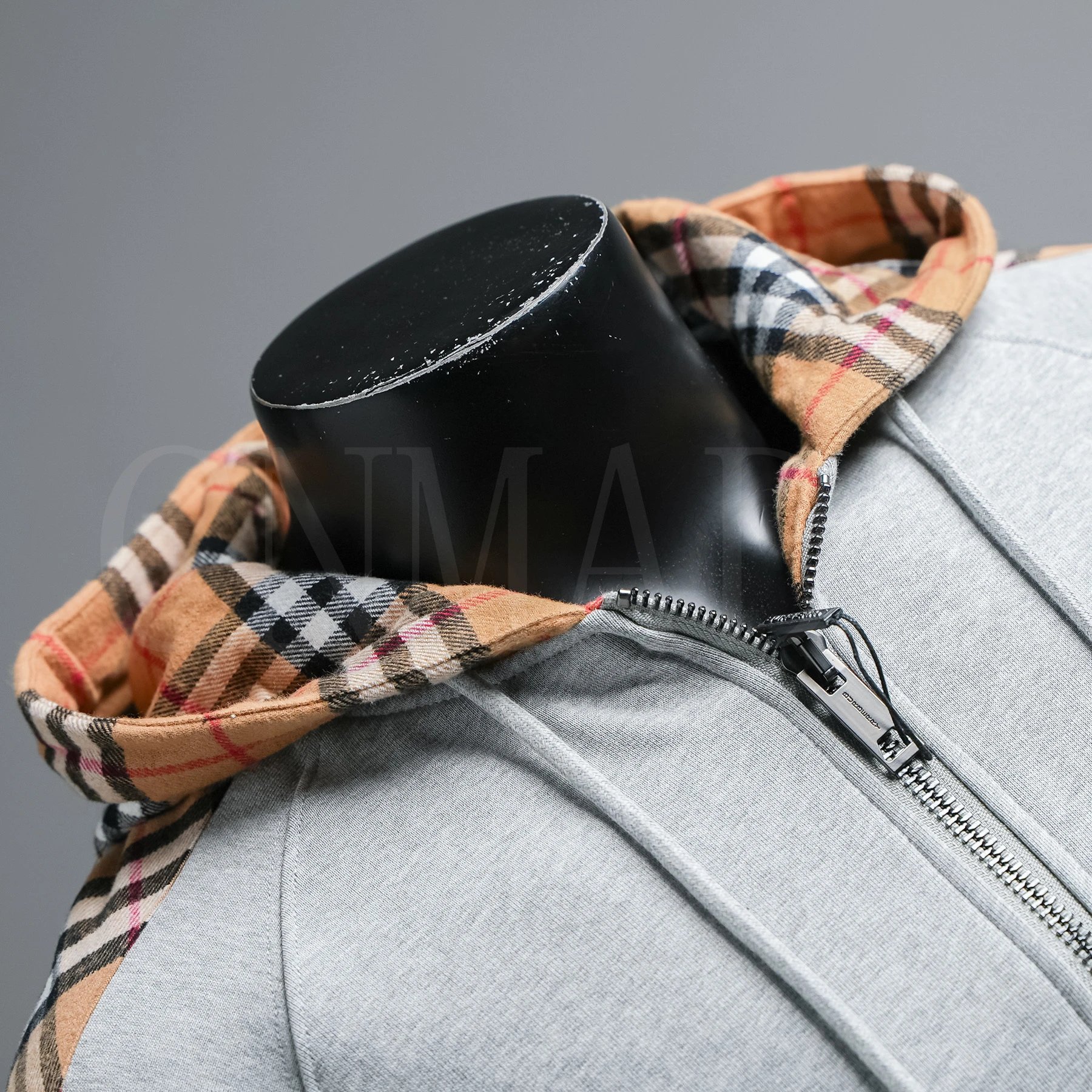 0:9708302387: 颜色:灰色-20Fw 刺绣TB格纹拼接拉链卫衣外套
