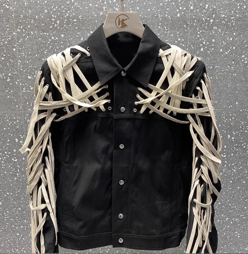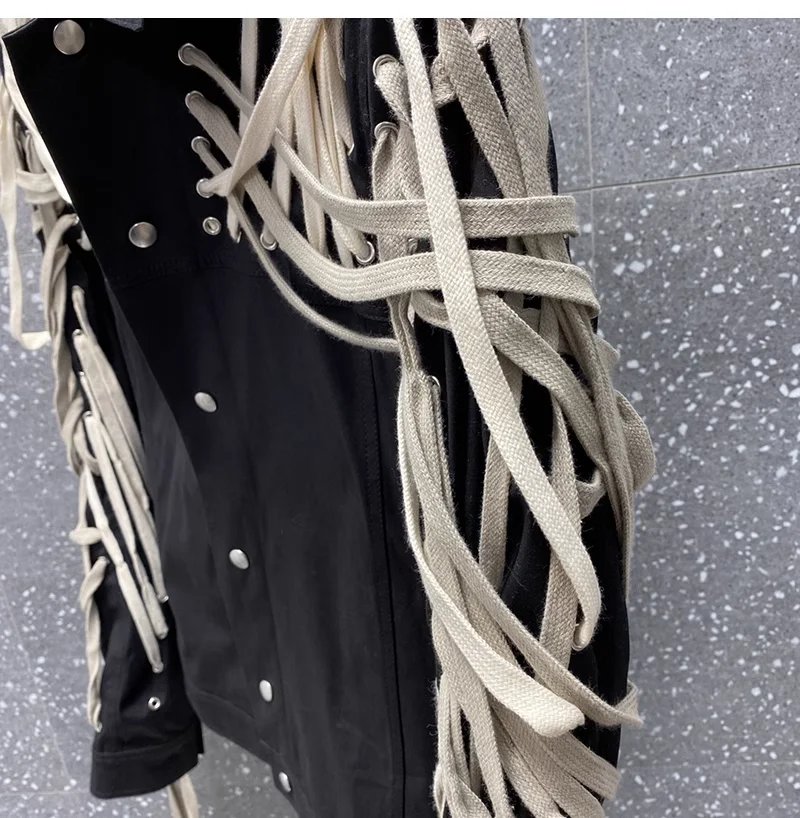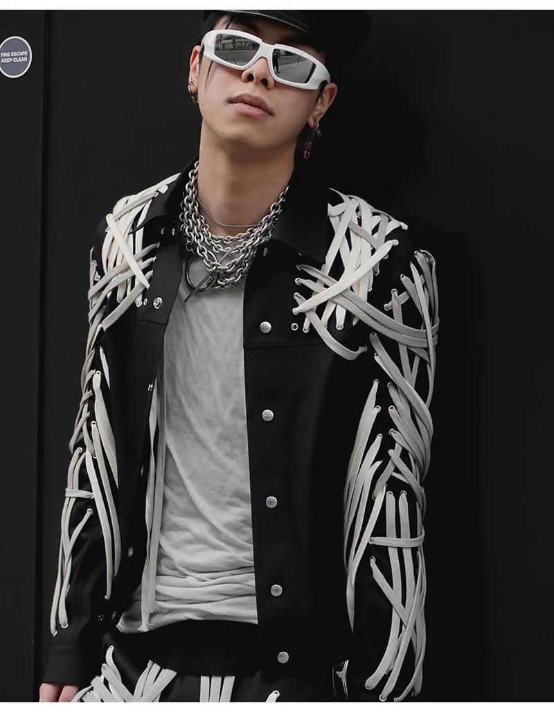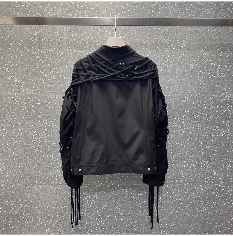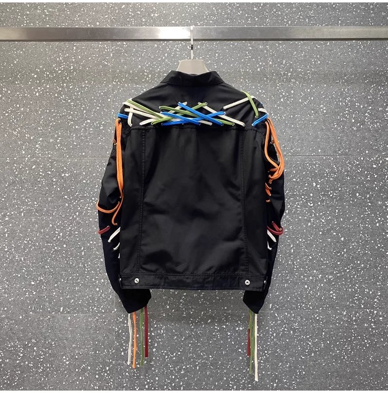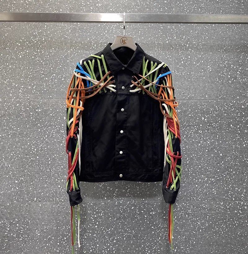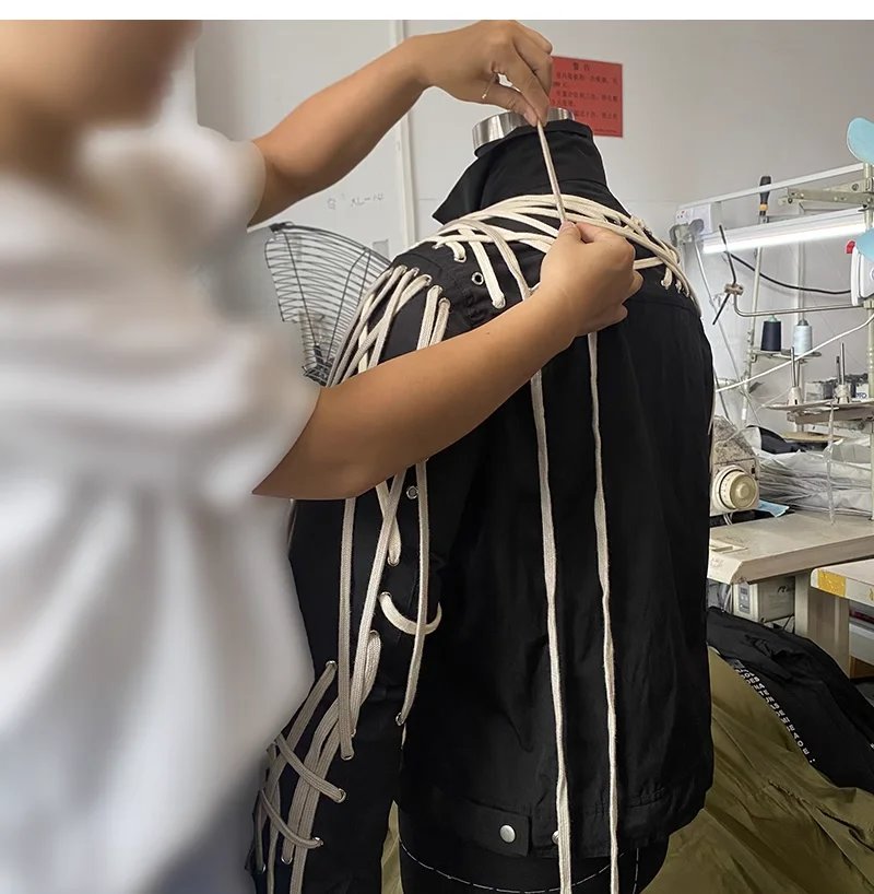 Classic High Version Dark Style Main Line Pure Handmade Cotton Rope Weaving Motorcycle jacket Outwea