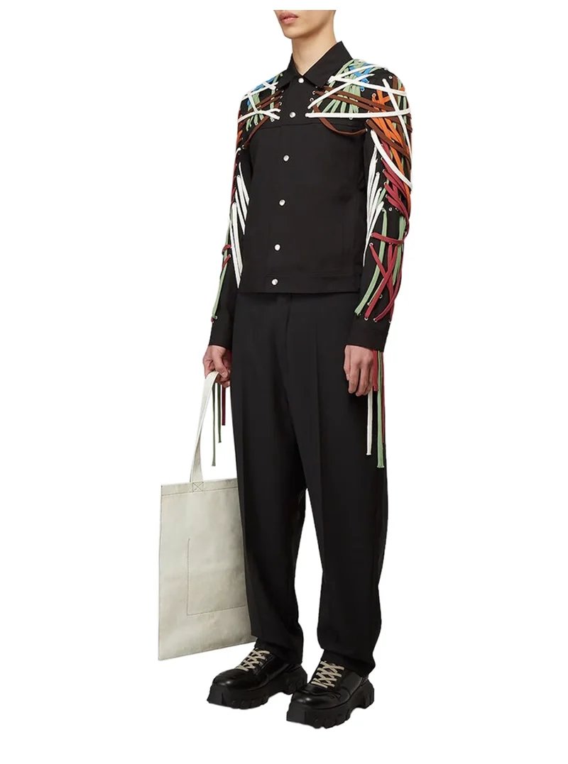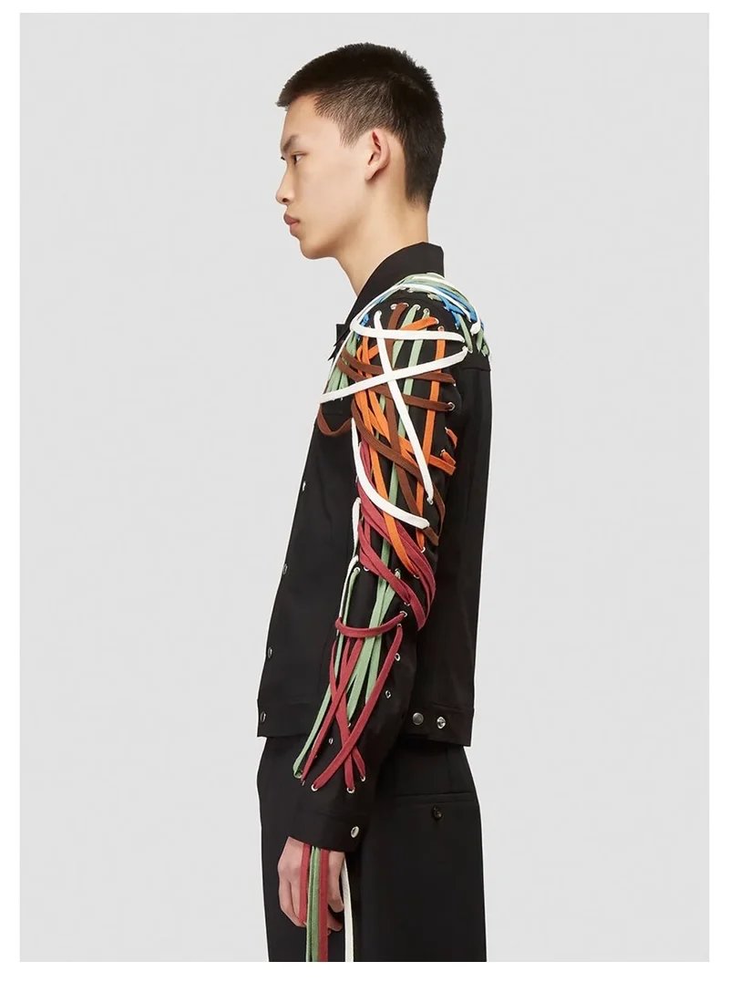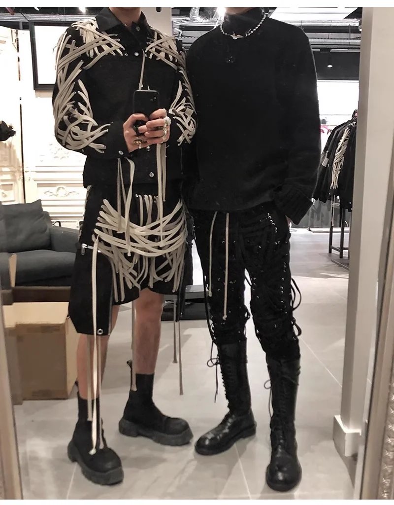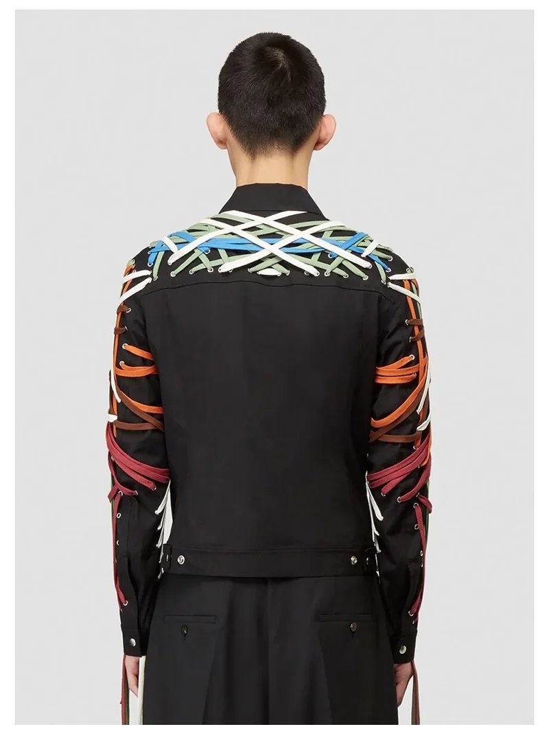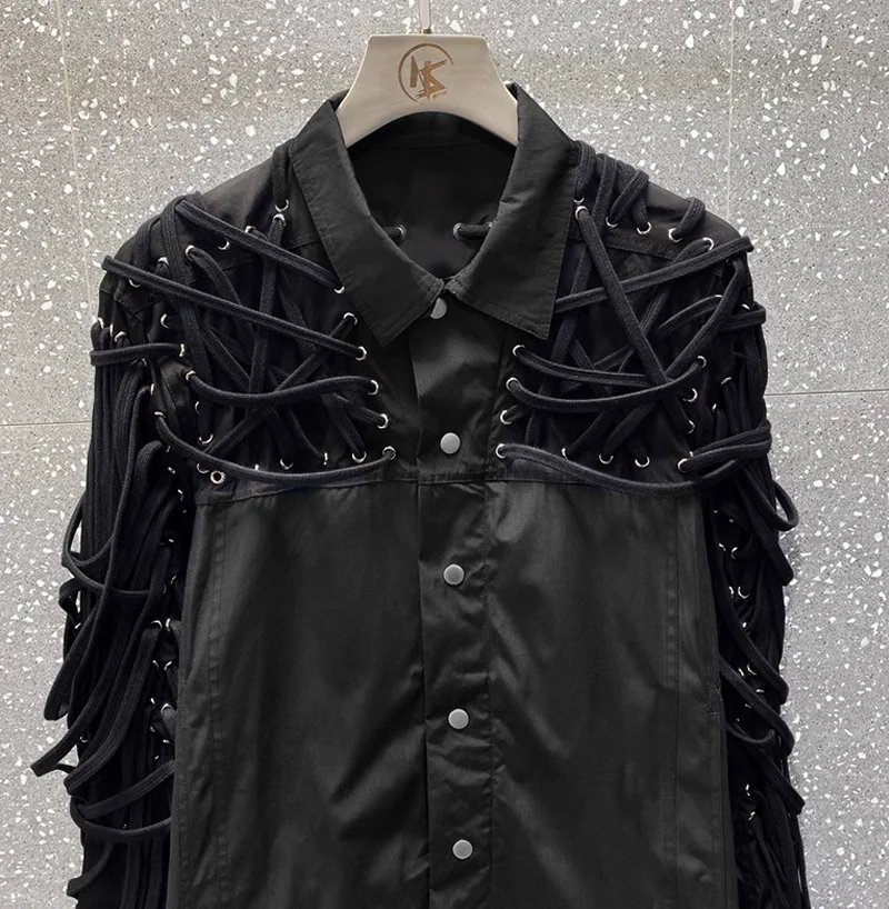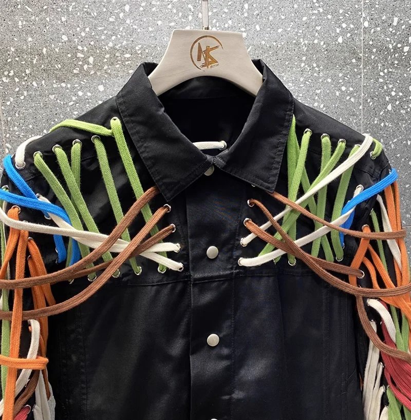 Classic High Version Dark Style Main Line Pure Handmade Cotton Rope Weaving Motorcycle jacket Outwea