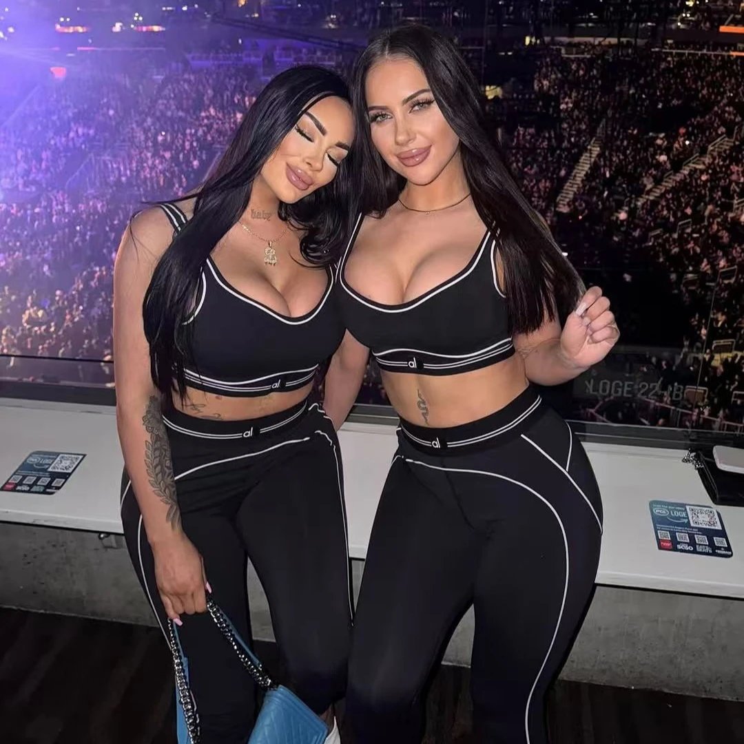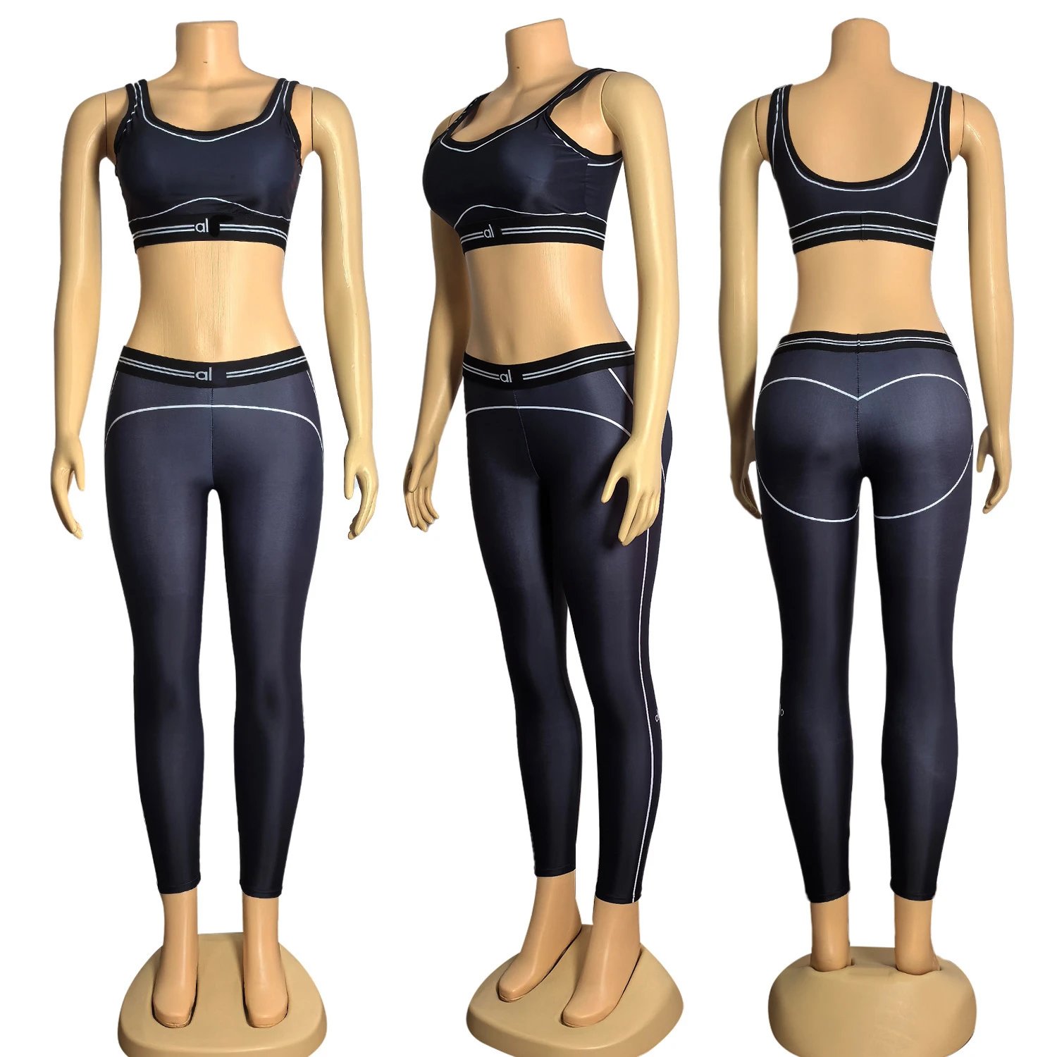 YY9002欧美跨境女装夏季新款字母时尚瑜伽运动休闲上衣裤子两件套