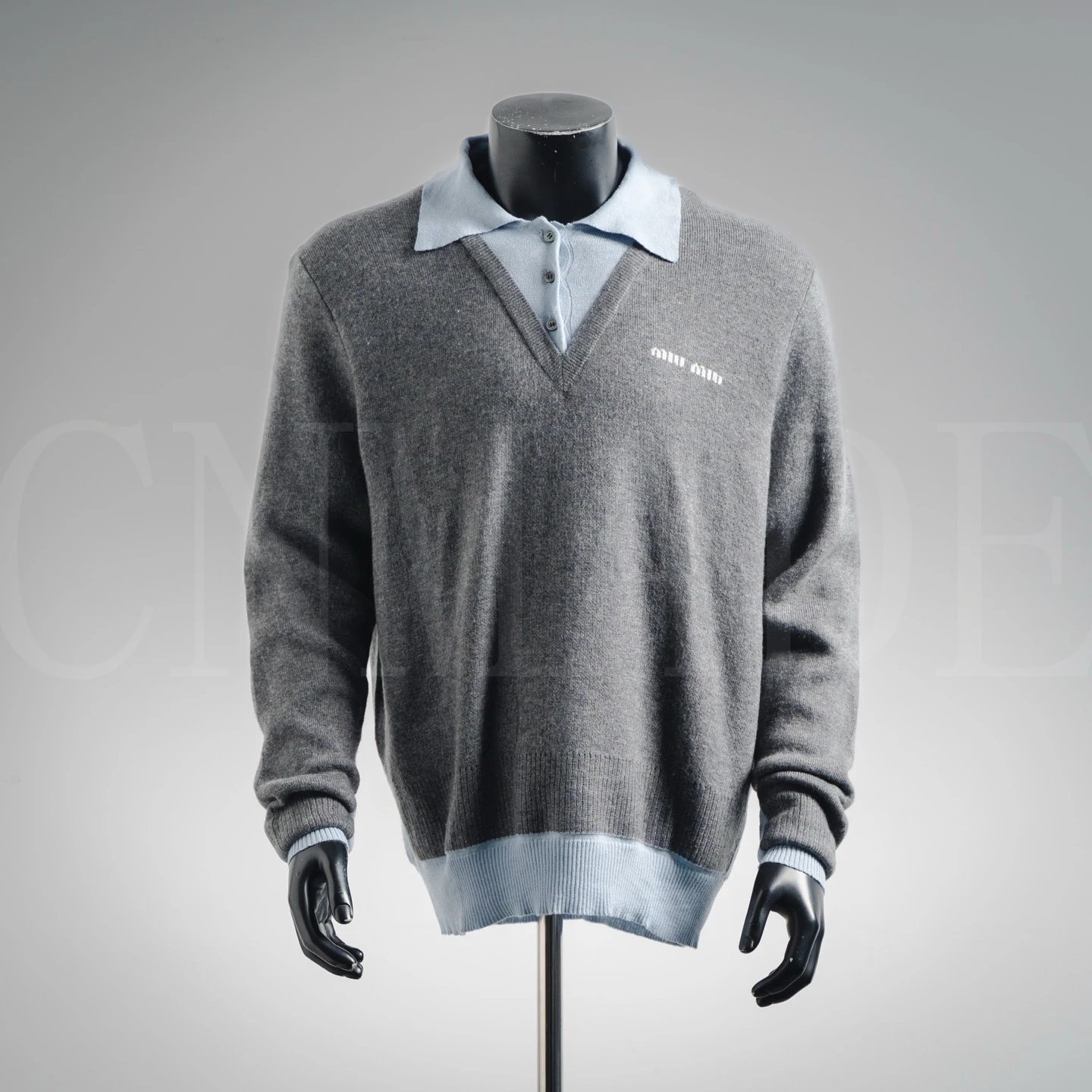 MIU2拼领假两件羊绒羊毛混纺POLO毛衣 - Agentlo Weidian Product – Agentlo