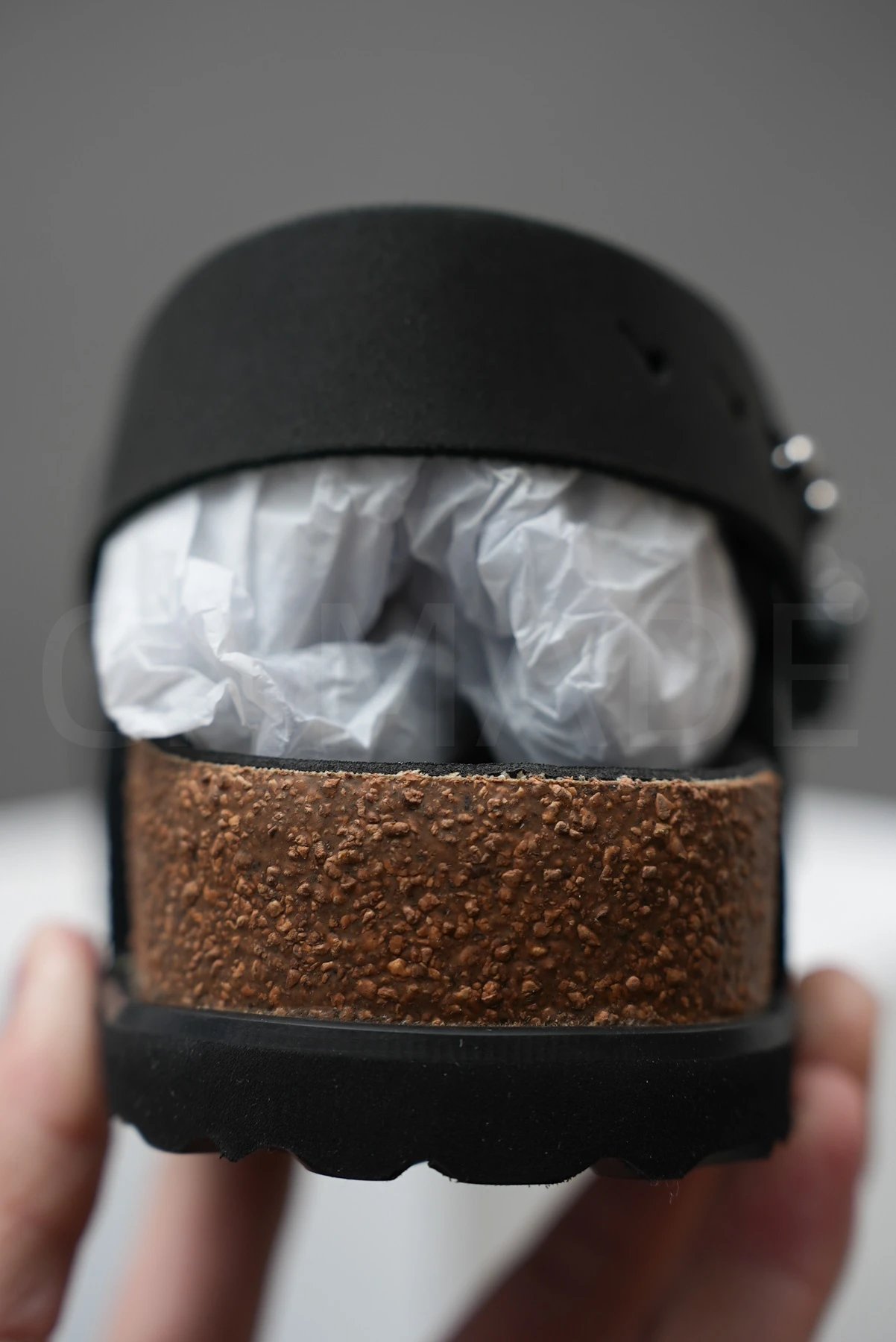 Example: Take photos of the logo, check stitching quality, measure the insole length, etc.