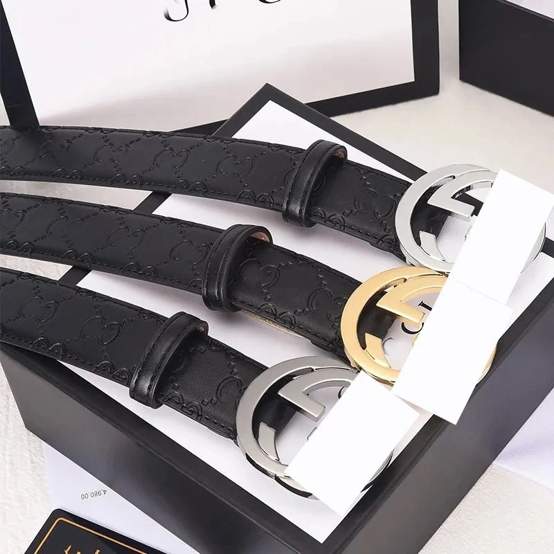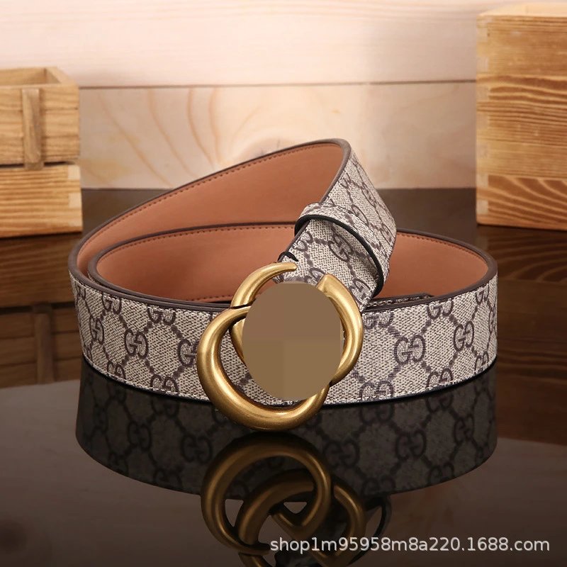 跨境爆款双G皮带男平滑扣真皮腰带字母时尚潮流百搭裤带厂家直销