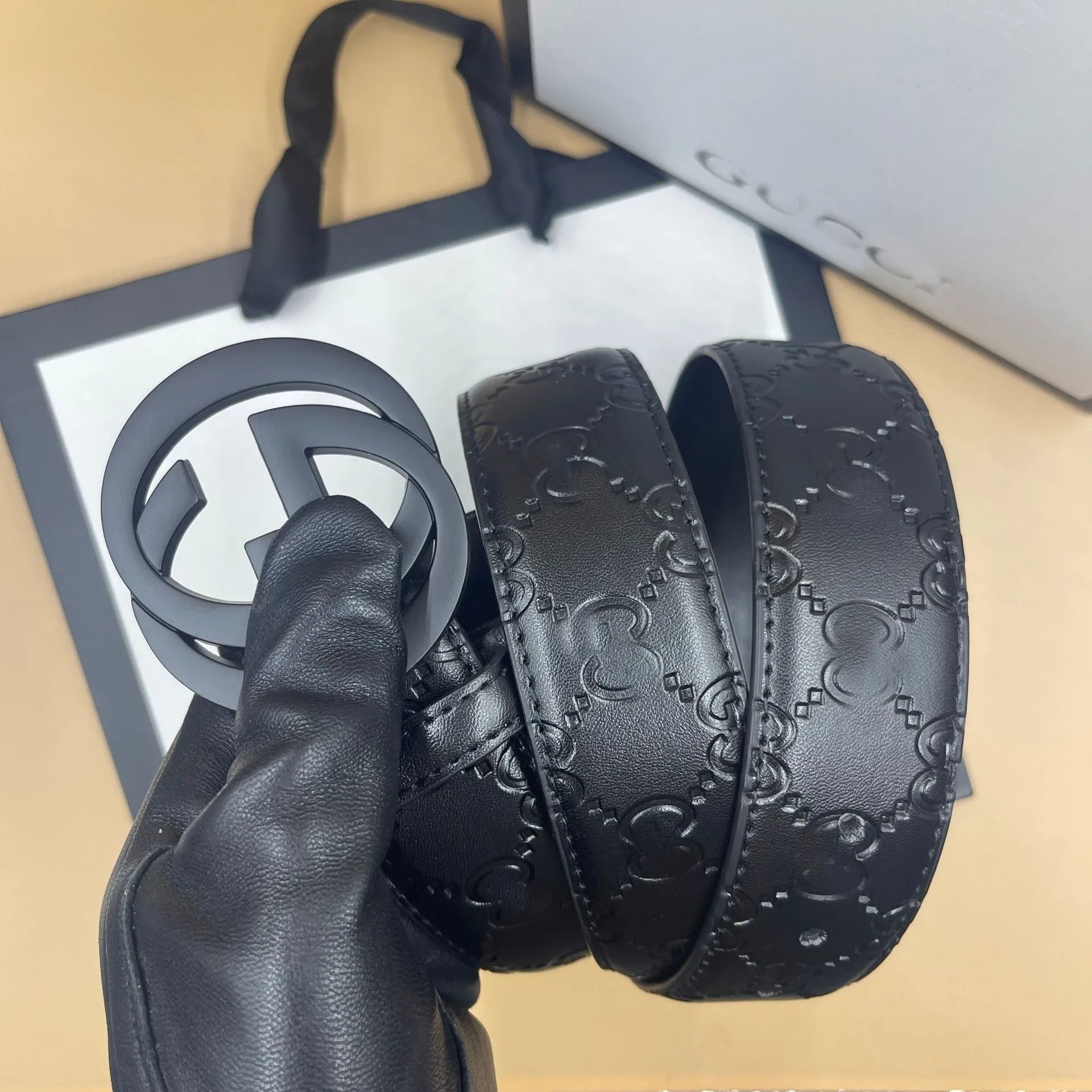 颜色:黑底黑色压花+GG金扣