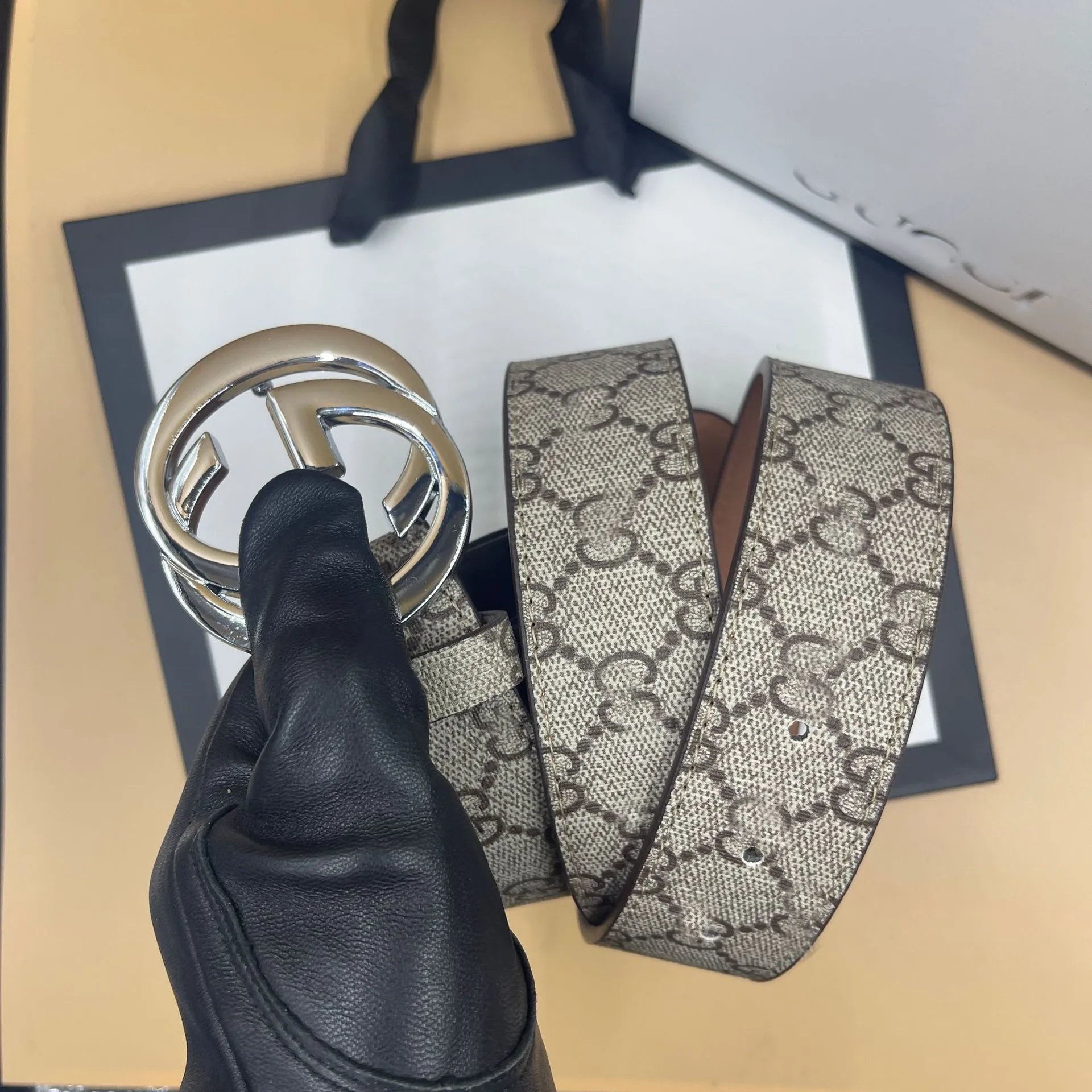 颜色:米底黑色压花+GG银扣