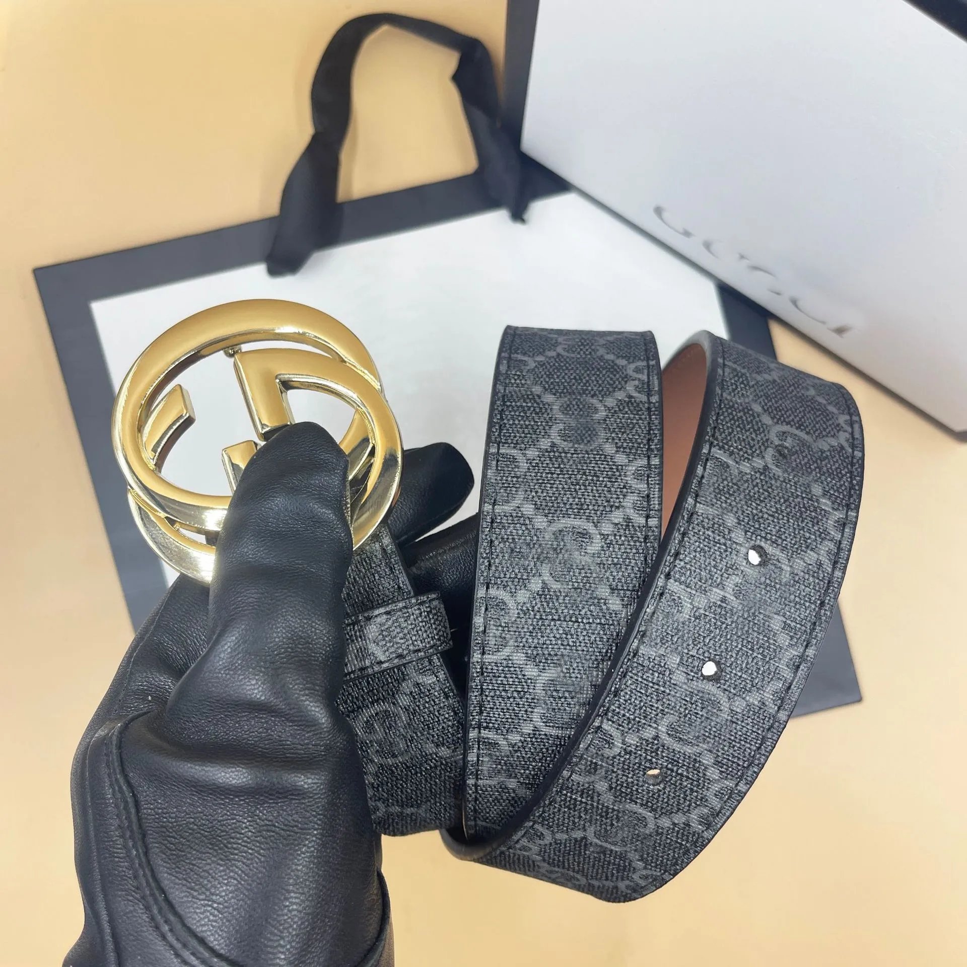 颜色:黑底黑色压花+GG金黑扣