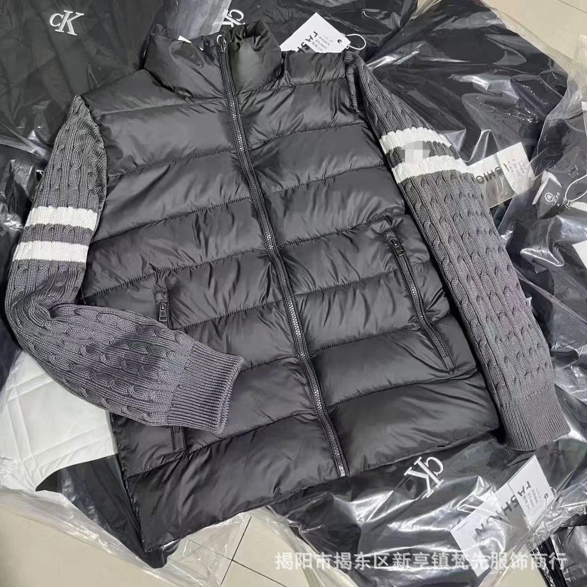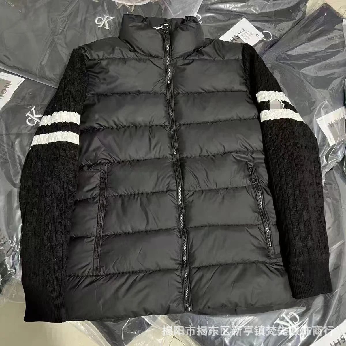 立领针织排骨拼接春秋棉服男女保暖短款设计新款加厚情侣休闲外套