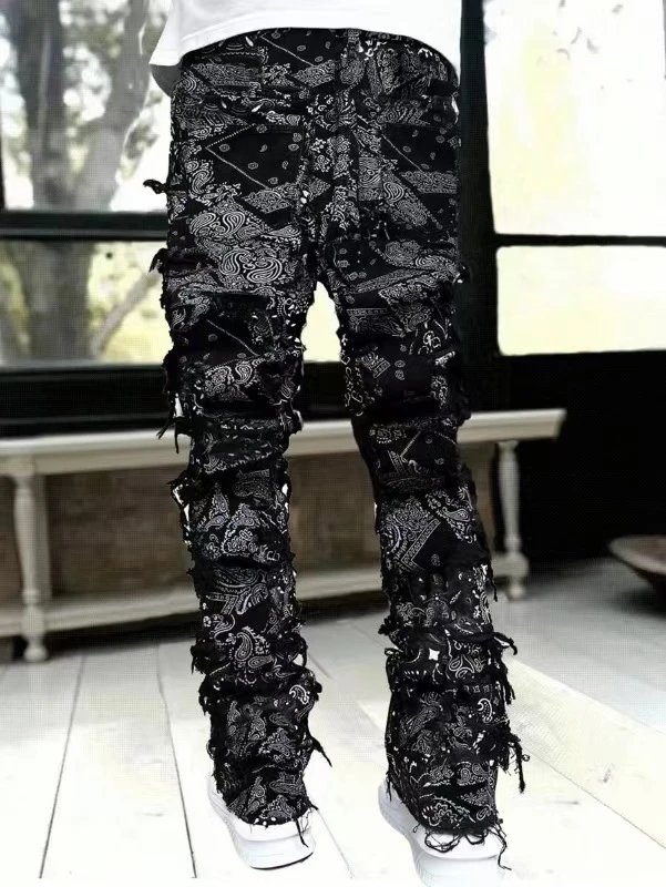 新款男士牛仔直筒裤欧美街头时尚ins爆款弹力贴布牛仔直筒裤