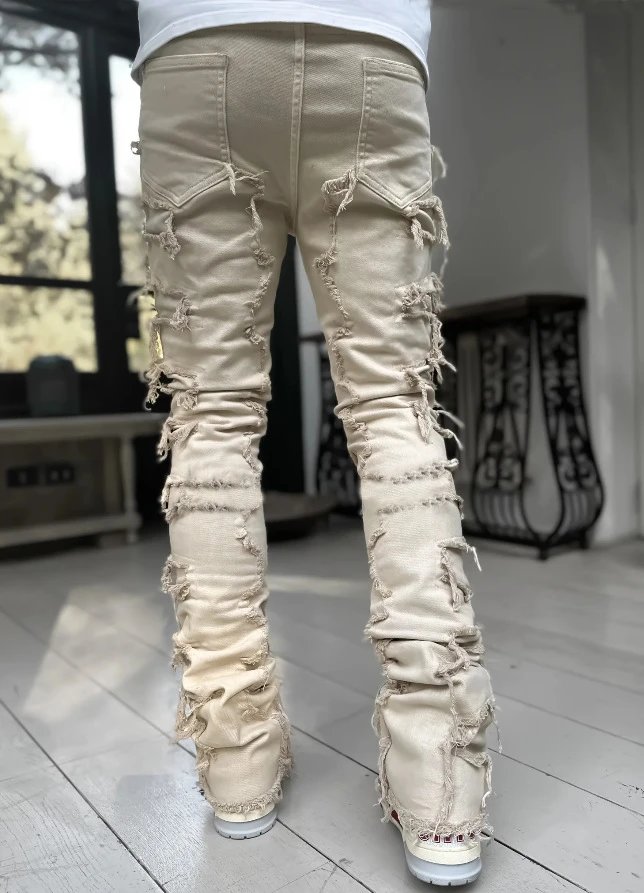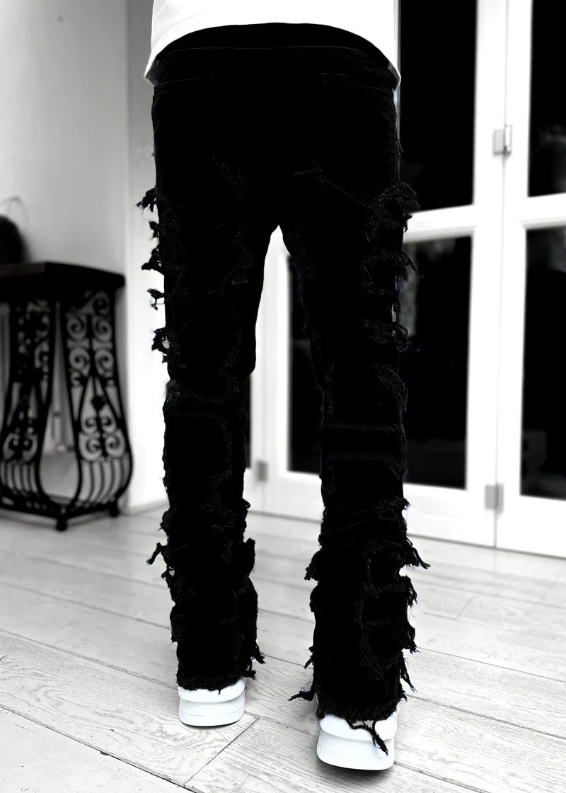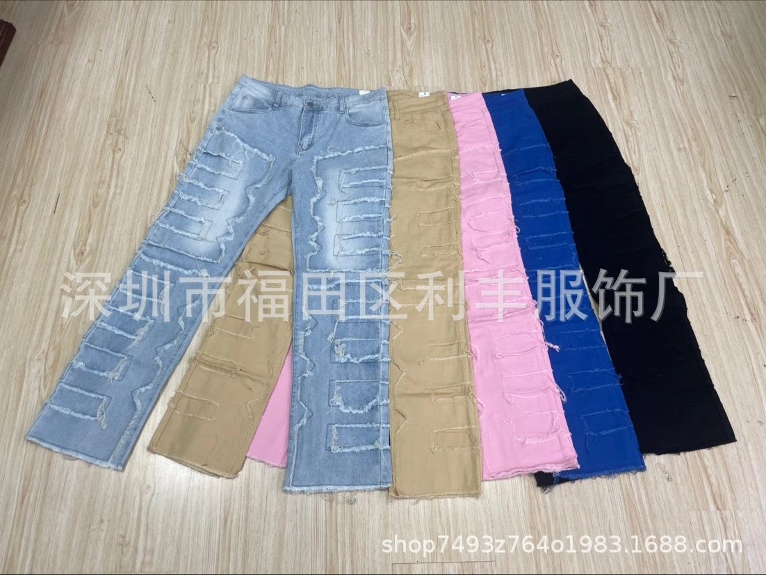 新款男士牛仔直筒裤欧美街头时尚ins爆款弹力贴布牛仔直筒裤 - Agentlo Weidian Product – Agentlo