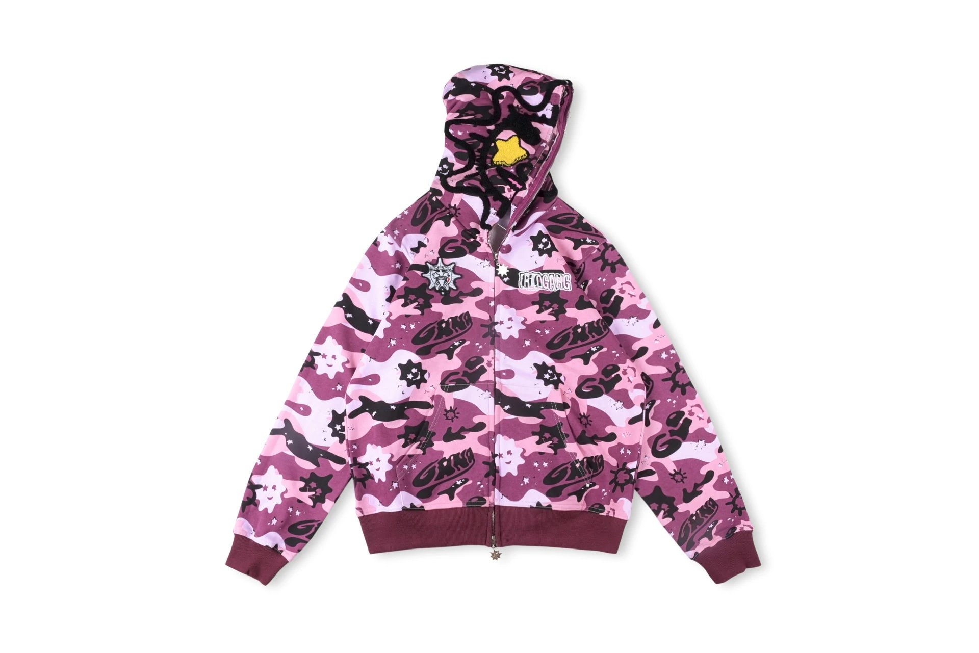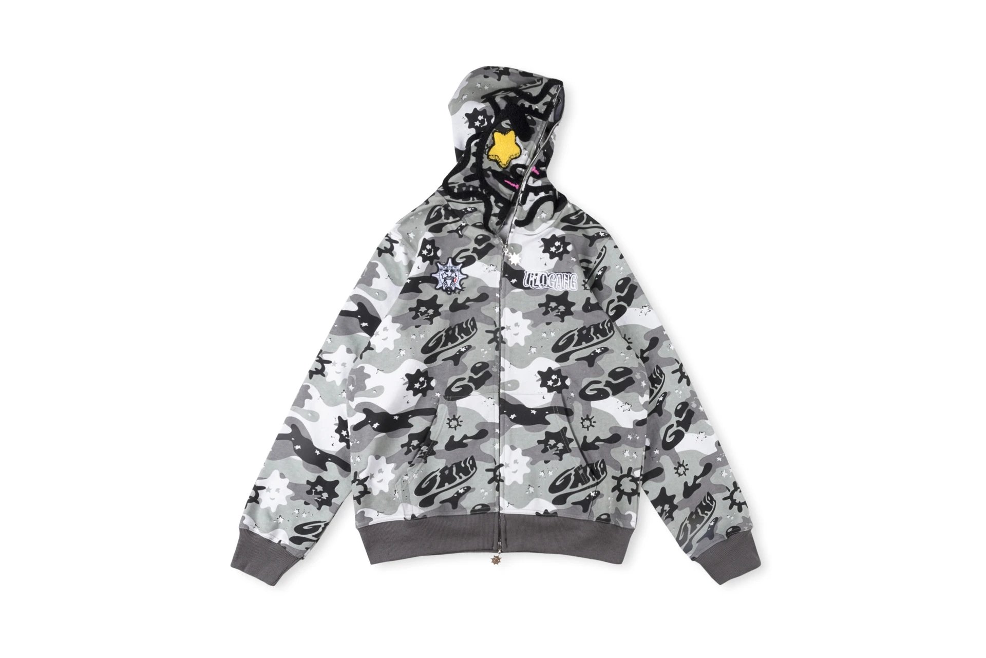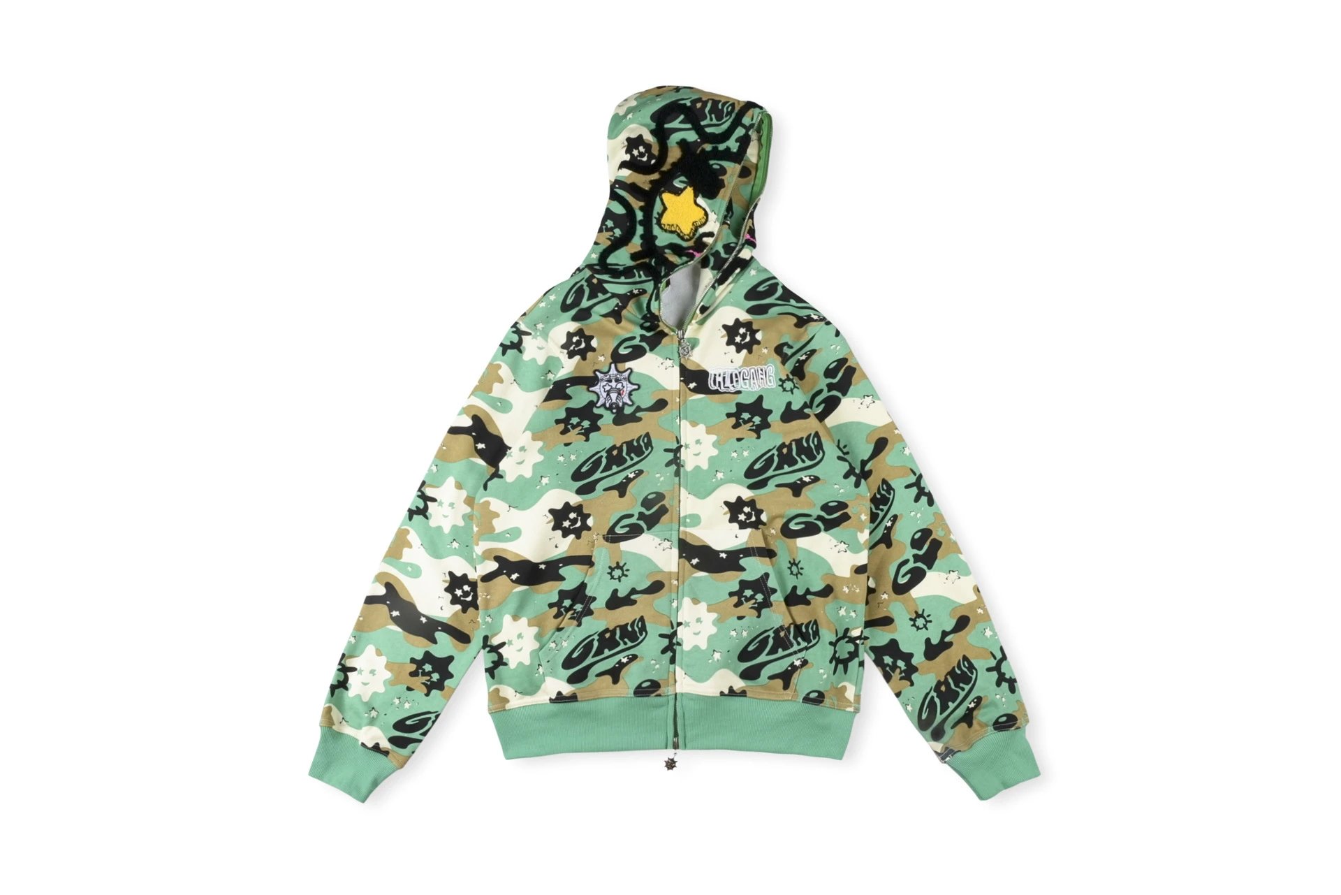 25FW嘻哈街头ZipHoodieGlo卡通印花男女迷彩拉链卫衣