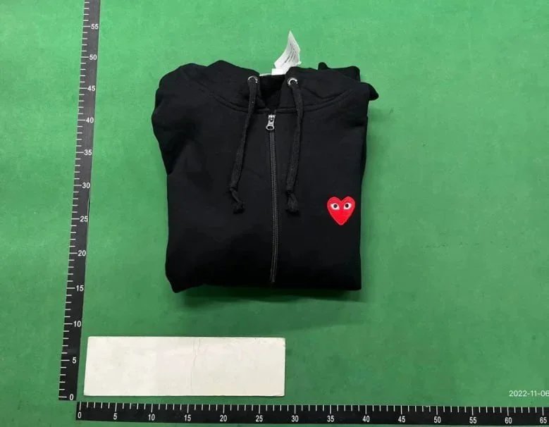 Example: Take photos of the logo, check stitching quality, measure the insole length, etc.